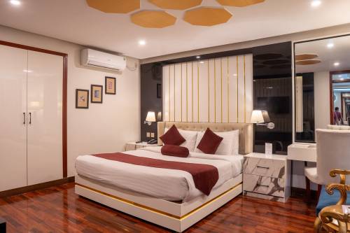 Our Deluxe Room offers 1 King Bed along with free high speed internet, AC, Sofa, and LED with satellite channels.